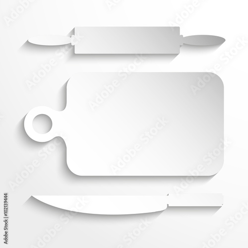Rolling pin, cutting board and knife. Kitchen utensils . Vector icon.