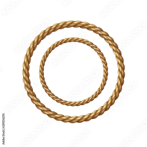 Rope circle frames isolated on white background. Vector round texture string, jute, thread or cord border pattern.