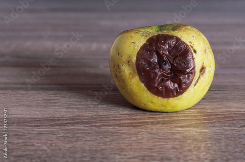 rotten apple on the table
