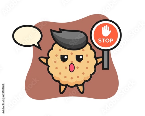 Round Biscuits Character Illustration holding a stop sign