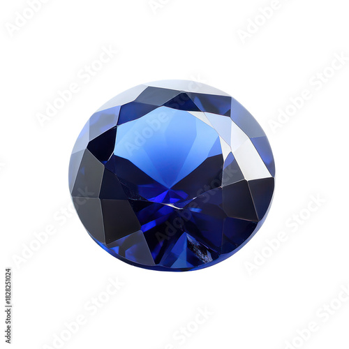 Round cut deep blue sapphire gemstone isolated on transparent background