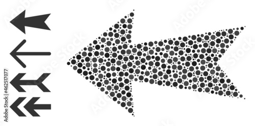Round dot collage arrow left. Vector mosaic is based on arrow left symbol, and created from scattered round parts. Vector icon of arrow left designed of scattered round items.
