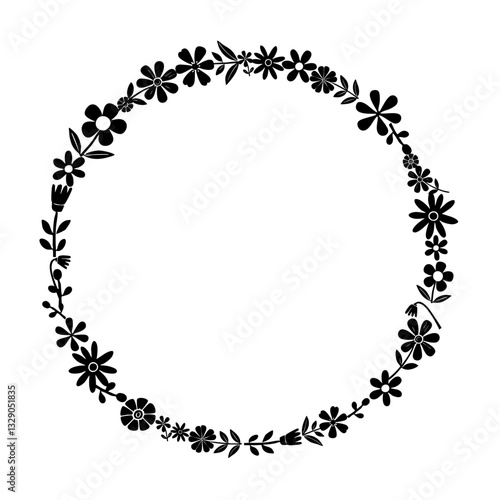 Round vector frame with flowers