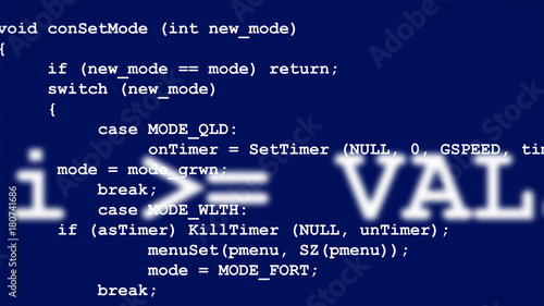 Rows of computer code disappearing in distance. Cybersecurity and big data analysis cg animation. Abstract computer program code that actually has no sense.