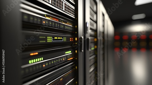 Rows of server racks in a data center.