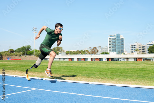 Running amputee in motion.
