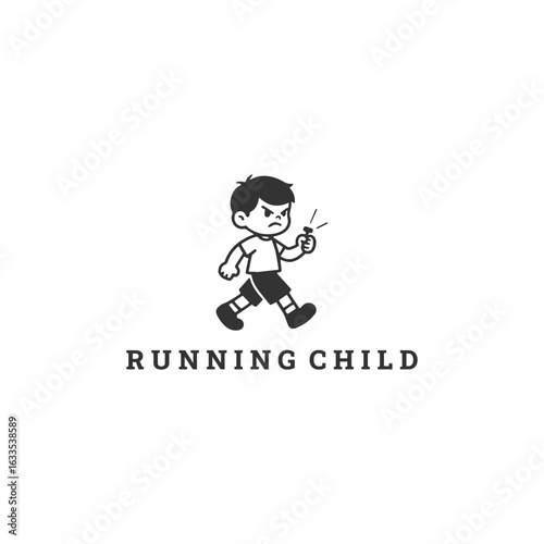 Running child logo style icon design template vector illustration