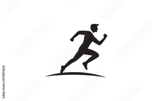 Running Man Black Silhouette on White Background Athlete in Motion Sport and Fitness Concept Minimalist Design Vector Illustration silhouette