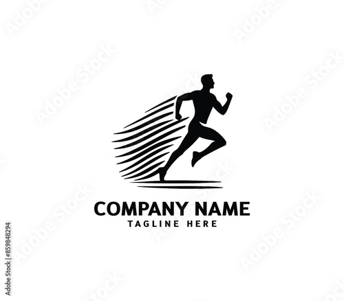 Running Man silhouette logo. Marathon logo black. Speed Running Concept. Running club sports vector