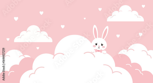 Sad Bunny on Clouds with Heart Pink Background Illustration Design Concept