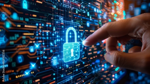 Safeguard digital transactions and data encryption using secure keys, focusing on password protection and cyber safeguards for laptops and secure environments.