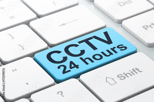 Safety concept: CCTV 24 hours on computer keyboard background