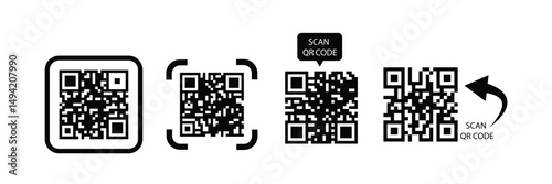 Sample qr code icon on white background. Scan me QR Code Icon Outline Style for web and mobile apps, payment. Scan me line icon with QR code.
