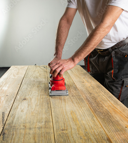 Sanding machine in male hand