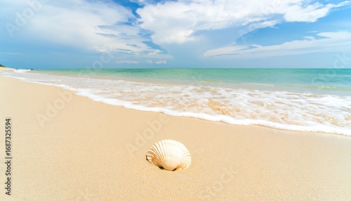 Sandy beach with seashell and waves (1)