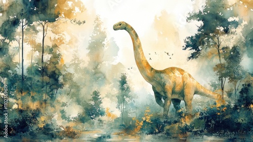 Sauropod Dinosaur in a Misty Forest Setting