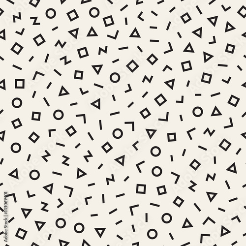 Scattered Geometric Line Shapes. Abstract Background Design. Vector Seamless Black and White Pattern.
