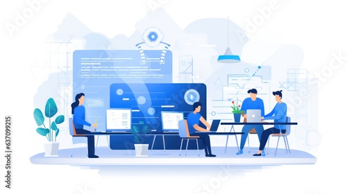 Scene depicting a team of developers working on mobile app development, coding for iOS or Android platforms