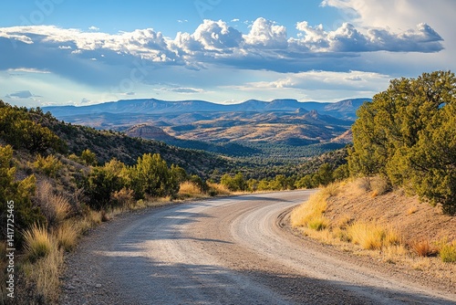 Scenic dirt road winding through a valley