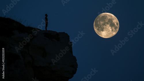 Scenic View: Individual on Cliff Edge Against a Bright Sky