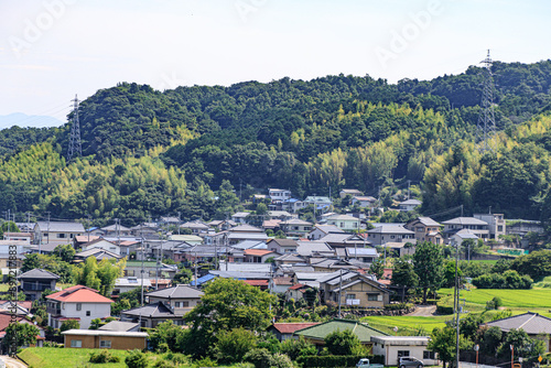 Scenic View of Japanese Village Surrounded by Lush Greenery