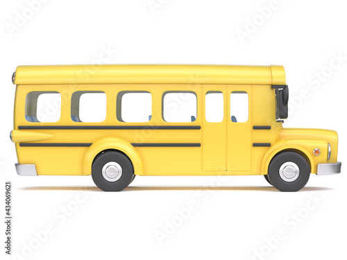 School bus side view, on white background 3d rendering
