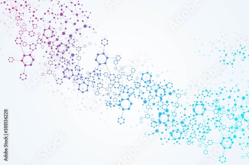 Science network pattern, connecting lines and dots. Technology hexagons structure or molecular connect elements.
