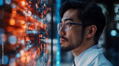 Scientific Researcher Analyzing Data in Modern Laboratory Setting