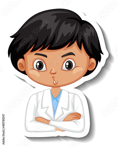 Scientist boy cartoon character sticker
