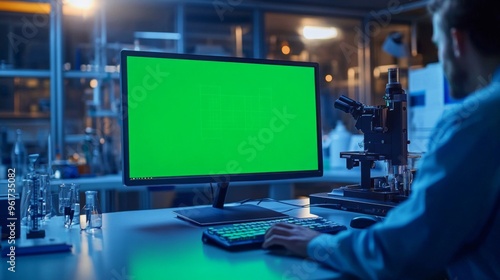 Scientist in Lab Working on Computer