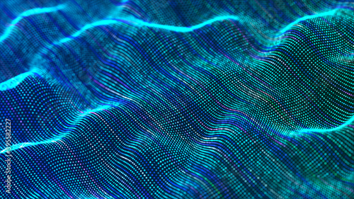 Sci-fi background. Digital wave with many particles. Template for festive presentation. 3d rendering