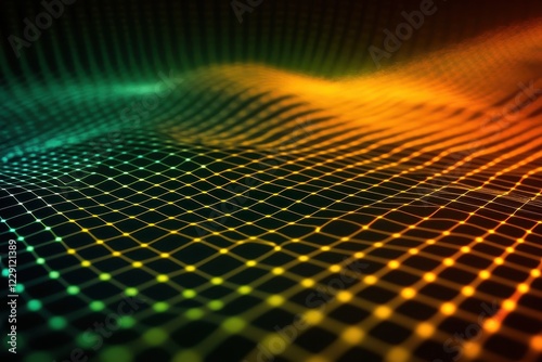 Scope scanning and data processing visualization over a grid with vibrant color gradient, scope scanning and data processing over grid