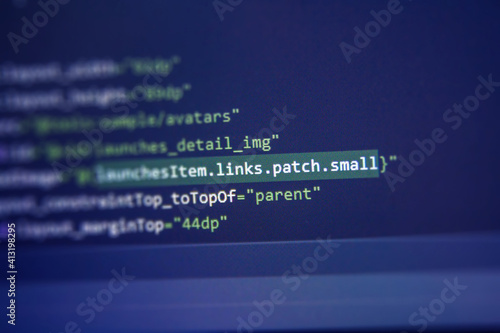 Screen of android application developing code. Lines of code on computer screen