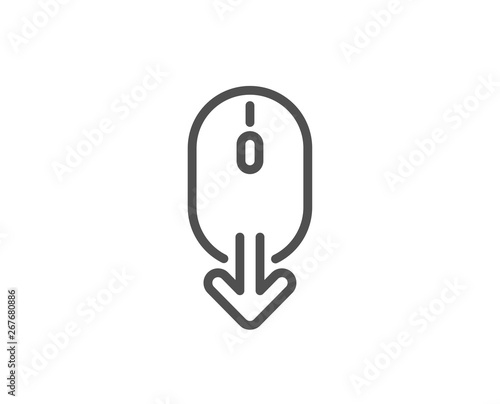Scroll down mouse line icon. Scrolling screen sign. Swipe page. Quality design element. Linear style scroll down icon. Editable stroke. Vector