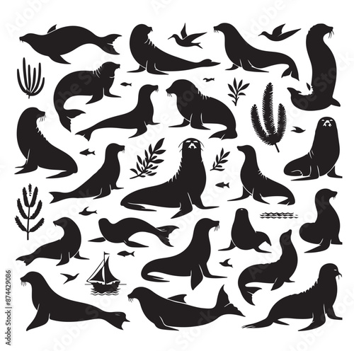 Seal set of silhouettes vector