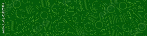 Seamless background with contour elements. Banner Back to school. Green header banner