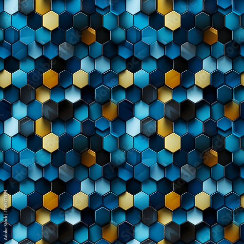 Seamless Blue and Gold Hexagonal 3D Pattern