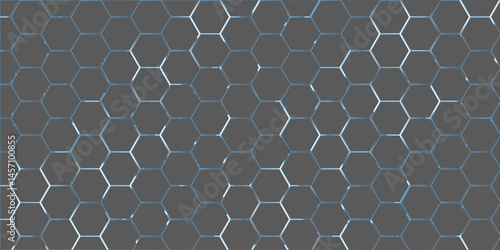 Seamless blue metal shows a hexagonal honeycomb grid pattern with a technology structure on its surface