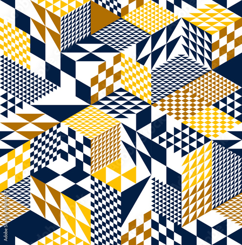 Seamless cubes vector background, rhombus and triangles boxes repeating tile pattern, 3D architecture and construction, geometric design.