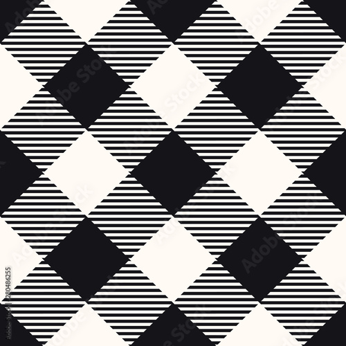 Seamless diagonal white and black lumberjack plaid check textile pattern vector