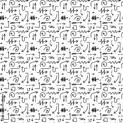 Seamless doodle pattern with hand-drawn arrows and lines.