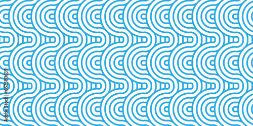 Seamless geometric ocean spiral pattern and abstract circle wave lines. blue seamless tile stripe geomatics overlapping create retro square line backdrop pattern background. Overlapping Pattern.