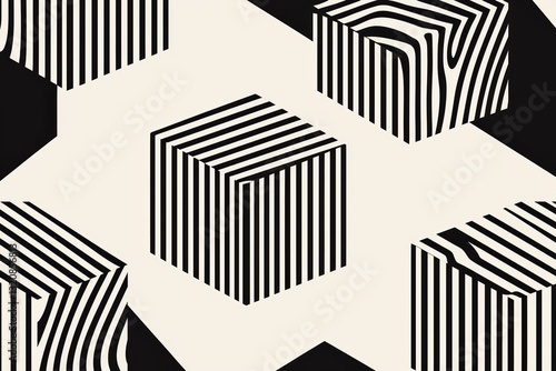 Seamless interwoven geometric mazes creating a 3D cube depth illusion, high-end optical illusion pattern, surreal refinement