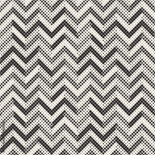 Seamless Irregular Geometric Pattern. Abstract Black and White Halftone Background. Vector Chaotic Rectangles Zigzag Texture