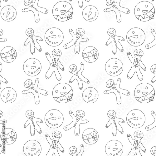 seamless linear pattern of christmas gingerbread cookies in the shape of a man and circle