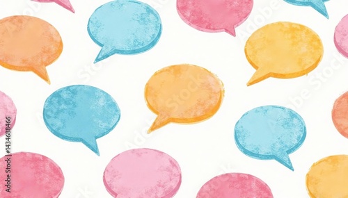 Seamless pastel speech bubble pattern on white background, whimsical, abstract