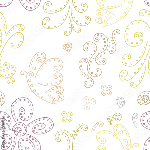Seamless pattern background with butterflies and flowers. Seamless pattern background abstract curlicues.