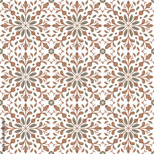 Seamless pattern botanical arabesque with brown color