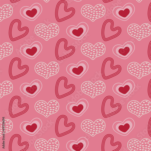 Seamless pattern for Valentine's Day. Creative white hearts on a pink background.