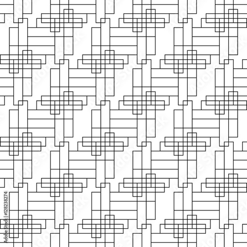 Seamless pattern. It consists of geometric shapes, arranged on a white background. Plain. Useful as design element for texture and artistic compositions.